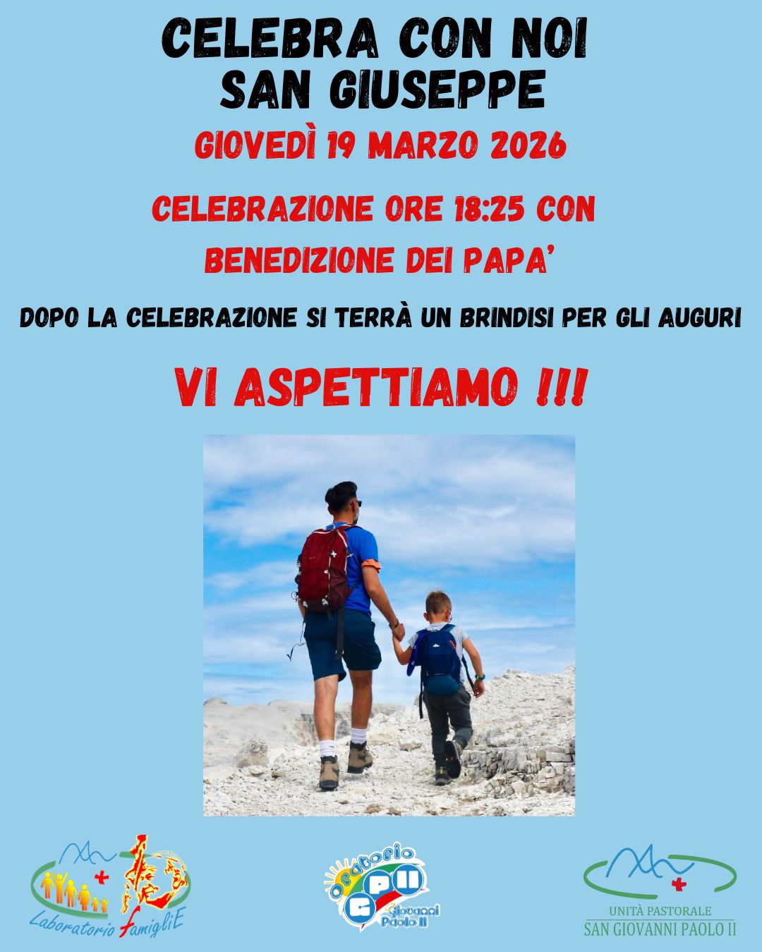 Festa del papà: il 19 marzo S.Messa in onore di San Giuseppe e a seguire aperitivo con le Famiglie del GP2